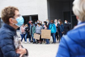 Gegen 8.15 Uhr kamen die ersten Mitglieder des Verwaltungsrats am Samstag im „Blannenheem“ an. Die kleine Gruppe von Demonstranten und Gegendemonstranten hatte sich da schon in Stellung gebracht. Die einen zeigten mit dem Daumen nach unten, die anderen drückten auf Plakaten dem FLB-Generaldirektor ihre Unterstützung aus. Grün und die meisten Verwaltungsratsmitglieder vermieden den direkten Kontakt und das Gespräch mit ihren Kritikern. „Es war bizarr“, sagte Patrice Klepper-Boever, Mitinitiatorin des Protests, „sie haben sich quasi hereingeschlichen, um nicht mit uns reden zu müssen.“