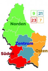 Luxemburg ist in vier Wahlbezirke eingeteilt. Jeder Bezirk schickt je nach Größe eine bestimmte Zahl von Abgeordneten ins nationale Parlament. Im Süden sind es 23 Abgeordnete, im Zentrum 21, im Norden 9 und im Osten 7. Die „Chamber“ wird also nachher aus 60 Abgeordneten bestehen. Da Emma in Remich wohnt, wird sie auf der Ostenliste ihrer Partei kandidieren. Sie könnte zwar auch woanders kandidieren. Aber im Osten kennt sie eben die meisten Leute. Und die gilt es, zu überzeugen.