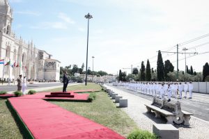 Rot-Grün-Gold trifft auf Rot-Weiß-Blau. Großherzog Henri und seine Frau Maria Teresa sind auf Staatsbesuch in Portugal. Untermalt von den Klängen der portugiesischen Nationalhymne und der Luxemburger „Heemecht“, die von Kanonenschüssen begleitet wurden, wurde das großherzogliche Paar am Hieronymitenkloster in Lissabon vom portugiesischen Staatspräsidenten Marcelo Rebelo de Sousa empfangen. Neben dem großherzoglichen Paar haben auch Wirtschaftsminister Franz Fayot, Außenminister Jean Asselborn, Familien- und Integrationsministerin Corinne Cahen, Finanzministerin Yuriko Backes und eine Luxemburger Wirtschaftsdelegation die Reise nach Lissabon angetreten.