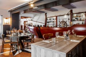 Der Mittagsservice ist gerade beendet, als wir in dem landesweit bekannten, mitten in der Top-Weinbergslage „Koeppchen“ angesiedelten, gastronomischen Refugium gleichen Namens eintreffen. David Fiegen sitzt hier seit letztem Jahr mit im Boot, seit einigen Monaten sind er und Metty Krack Geschäftspartner des Hauses. Apropos Boot: Die imposante Theke, die einem Segelschiff mit Steuerrad nachempfunden wurde, fällt dem eintretenden Gast sofort ins Auge.