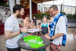 Bereits zu Beginn der Einschreibungen vor Ort lockte die Meisterschaft, die auf der Wasserrutsche „Space Shuttle“ ausgetragen wurde, viele Teilnehmer an. Zwischen 14 und 16 Uhr nahmen insgesamt 67 Badegäste teil. „Der Wettbewerb kommt vor allem bei der jüngsten Altersklasse von 7 bis 12 Jahren sehr gut an“, sagt Schwimmmeister Kevin Hochstrasser, der die Anmeldungen entgegennahm. Zusammen mit den Bademeistern Ugo Sergeant und Ilie Ciocanea kümmerte er sich um den planmäßigen Ablauf der Veranstaltung. Dementsprechend erhielten bei der Anmeldung alle Teilnehmer ein grünes Armband mit einer Nummer. Dieses musste jedes Mal nach dem Rutschen vorgezeigt werden, damit die entsprechende Rutschzeit notiert werden konnte.
