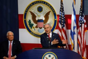 Israels Regierungschef Benjamin Netanjahu bezeichnete die Eröffnung der US-Botschaft in Jerusalem als „glorreichen Tag“. Israel habe „keine besseren Freunde auf der Welt“ als die USA. „Danke, Präsident Trump, dass Sie den Mut hatten, ihre Versprechungen einzuhalten!“ Es sei auch „ein großer Tag für den Frieden“, sagte Netanjahu. „Ein Frieden, der auf Lügen basiert, kann nur an den Felsen der nahöstlichen Realität zerschellen. Und die Wahrheit ist, dass Jerusalem immer die Hauptstadt des jüdischen Volkes bleiben wird.“