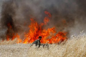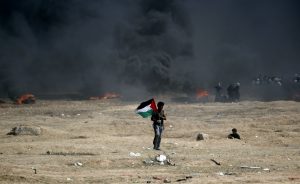 Im Gazastreifen protestierten Zehntausende Menschen. Israelische Soldaten erschossen Palästinenser, die sich dem Grenzzaun zu sehr näherten oder ihn beschädigen wollten. Die israelische Armee warf den Palästinensern „beispiellose Gewalt“ vor. Sie hätten Soldaten mit Brandbomben und explosiven Gegenständen beworfen. Auf Fotos waren junge Palästinenser mit Steinschleudern und brennende Autoreifen zu sehen. Die israelische Luftwaffe habe zudem Posten der im Gazastreifen herrschenden radikalislamischen Hamas angegriffen. Damit habe die Armee auf Beschuss von dort auf Soldaten reagiert.