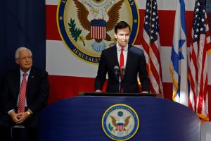 Kushner betonte, die US-Regierung werde sich weiter um ein Friedensabkommen zwischen Israelis und Palästinensern bemühen. Die USA seien entschlossen, dabei zu helfen, „einen nachhaltigen Frieden zu schaffen“. In Bezug auf die zeitgleichen tödlichen Proteste an der Grenze zwischen dem Gazastreifen und Israel sagte Kushner: „Diejenigen, die Gewalt provozieren, sind Teil des Problems, nicht Teil der Lösung.“ Kushner gehört zu Trumps Team, das sich um eine Friedenslösung für den Nahen Osten bemühen soll.