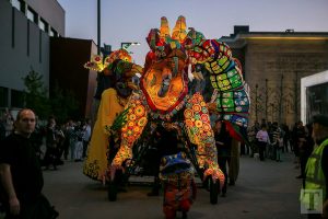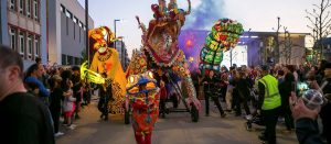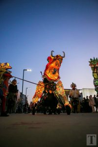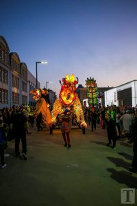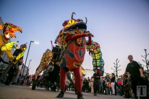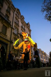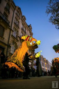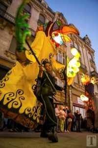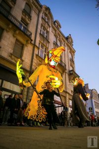 Auf der Place de la Résistance zog um 21 Uhr eine Parade in Richtung rue de l’Alzette. Majoretten, versteckte Musikanten, Tänzer und Laternenträger säumten die Straße. Am Rathausplatz angekommen, zog der Umzug dann in Richtung ArcelorMittal Esch-Schifflingen weiter, wo das feurige Finale der „Compagnie Carabosse“ die Besucher erwartete.