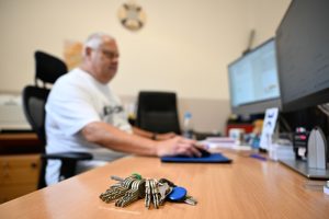 Der Arbeitstag des freundlichen Mannes beginnt in der Regel gegen 6 Uhr – sowohl während der Unterrichtszeiten als auch in den Ferien. Bei seinem morgendlichen Gang über das Gelände überprüft er, ob alles intakt ist und nichts repariert werden muss. Und öffnet alle Türen. „Wir haben zwar Badges, aber ich habe auch die Schlüssel, wenn mal der Strom ausfällt“, erklärt Mecky, während er einen dicken Bund in der Hand hält. Lachend meint er: „Wie viele Schlüssel es genau sind, weiß ich nicht. Aber es sind viele.“ Nach dem Aufsperren geht es ans Säubern des Schulhofs, der sich zu Unterrichtszeiten vor 8 Uhr dann allmählich füllt.