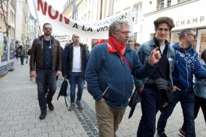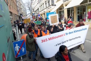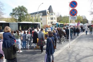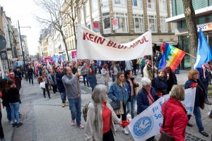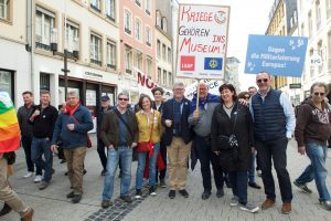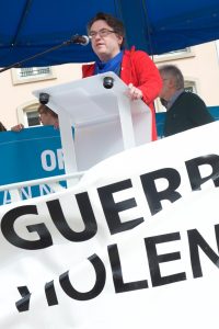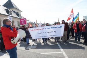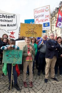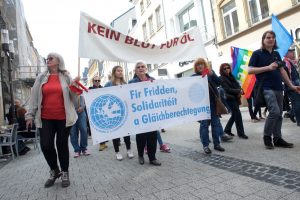 Viele Aktivisten, die auch in den achtziger Jahren bereits an Friedens- und Ostermärschen teilgenommen hatten, zogen vom Glacis-Feld zum Clairefontaine-Platz. Hier moderierte Zohra Barthelmy, die auch aktiv an den „Fridays for futur“ mitwirkt und somit eine Brücke zur neuen Schülerbewegung schlug und stellte die einzelnenen Redner vor.