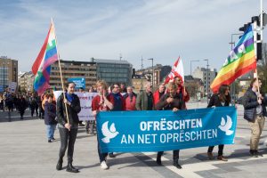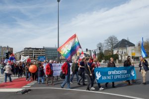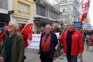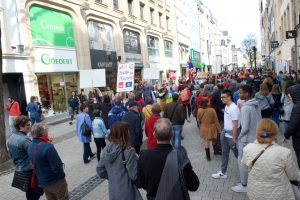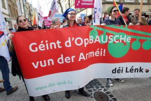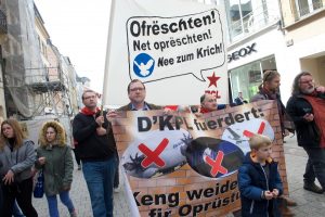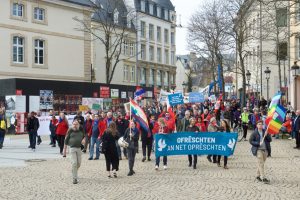 Die ganz große Massenkundgebung war es nicht, aber rund 600 Menschen waren dem Aufruf der Plattform FriSol und des OGBL gefolgt und zum ersten Friedensmarsch seit vielen Jahren in die Hauptstadt gekommen um gegen Aufrüstung und für soziale Solidarität zu demonstrieren.