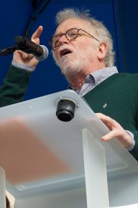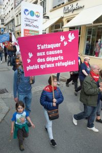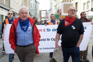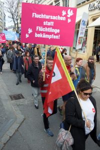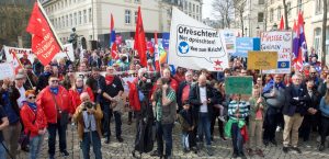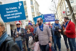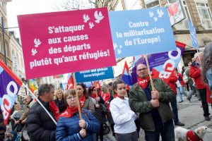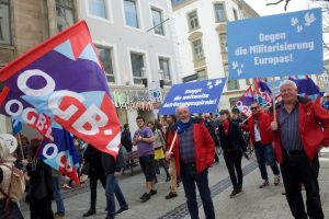 Auch Raymond Becker; Sprecher der Plattform griff die Summe von 1.740 Milliarden auf und stellte sie in Zusammenhang mit den UN-Ausgaben im Kampf gegen Hunger und Elend, die 80mal niedriger seien. Auch die Dutzende Millionen Flüchtlinge stünden in direktem Zusammenhang mit den enorm hohen Ausgaben für Rüstung. Die EU, in der immer weniger Solidarität zu spüren sei, brauche einen radikalen Neuanfang. Die Festungsmentalität lehnten immer mehr Menschen ab.
