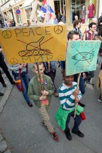 Das Wettrüsten nütze hauptsächlich wenigen Reichen, dabei könnten die jährlichen Ausgaben fürs Militär von rund 1.740 Milliarden Dollar anders angelegt, sicherlich helfen die sozialen Ungerechtigkeiten zu entschärfen. Die Friedensbewegung lehnt die Forderung nach Militärausgaben in Höhe von zwei Prozent des Bruttosozialproduktes kategorisch ab: Das Geld solle in die Menschen und nicht in Waffen investiert werden.