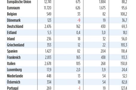 Auf die schier unvorstellbare Summe von insgesamt 12.740 Milliarden Euro beläuft sich mittlerweile das Volumen der geliehenen Gelder. Die beiden Länder mit den höchsten Schulden sind Frankreich (2.813 Milliarden) und Italien (2.678 Milliarden).