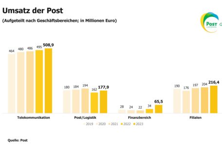 Eine überdurchschnittlich gute Entwicklung konnte die Post derweil im Finanzbereich verzeichnen. Hier konnten die Einnahmen (65,5 Millionen Euro), verglichen mit dem Vorjahr, fast verdoppelt, und verglichen mit 2021, fast verdreifacht werden. Hintergrund dieser Entwicklung ist die Trendwende bei den Leitzinsen in Europa. Der Post-Finanz-Bereich finanziert sich vor allem dadurch, dass er nicht-verzinste Kunden-Einlagen selber anlegt.