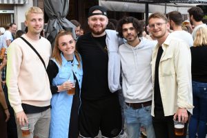 „Es ist ein schöner Tag, die Sonne scheint – wahrscheinlich wusste sie, dass wir heute feiern wollen“, witzelt Erik Stenersen. Der 28-Jährige aus Roodt/Syr steht mit Freundinnen und Freunden vor dem Café „Beim Renert“ in der Luxemburger Hauptstadt. Hinter ihm an einem Stand gibt es Bier und Curry-Wurst. Und der gut gelaunte junge Mann hat recht: Nach einem Regenschauer am Nachmittag sorgen kurz nach 20.30 Uhr die letzten Sonnenstrahlen der tief stehenden Sonne dafür, dass die Menschen in der Hauptstadt trocken in den Vorabend des Nationalfeiertags starten können.