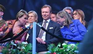 Der Wunsch der Brüder soll schon kurz danach in Erfüllung gehen. Denn nach Terminen in Esch und Lellingen kommt die großherzogliche Familie pünktlich um 21.30 Uhr an der Ehrentribüne an. Besonders darüber zu freuen scheint sich ein Mann, der mit Bierflasche in der Hand ruft: „Yeah Grand-Duc, yeah Mann.“ Noch ausgelassener ist die Stimmung aber kurz nach 10 Uhr inmitten des traditionellen Fackelzugs. In Höhe des großherzoglichen Palastes erleuchtet das orangefarbene Licht der brennenden Fackeln den Abend, während Pfadfinderinnen und Pfadfinder der „Lëtzebuerger Guiden a Scouten“ (LGS) singen: „Iwwerall wou mir higinn, froen d’Leit ons ëmmer, wie mir sinn a vu wou mir kommen …“ Und die Umstehenden applaudieren.