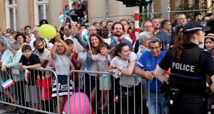 Doch bevor „Alle Farben“ gegen 10 Uhr an die Plattenteller tritt, steht an diesem Abend vor allem – aber nicht nur – für viele der kleineren Besucherinnen und Besucher ein wichtiger Termin auf dem Programm: die Ankunft der großherzoglichen Familie und vor allem von Großherzog Henri in der Hauptstadt sowie der traditionelle Fackelzug. Gespannt wartend und Fähnchen in Rot-Weiß-Blau schwenkend, stehen deshalb zahlreiche Menschen kurz vor 21.30 Uhr bei der in der rue Notre Dame nahe der Kathedrale errichteten Ehrentribüne.