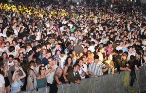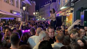 Erfüllt wird ihre Hoffnung teilweise. Denn vor allem vom oberen Teil der großen Parkfläche – in Richtung des Theaters – kann die tanzende Menge kurz vor 23 Uhr einen Blick auf die bunten, explodierenden Funken am Himmel erhaschen. Verdeckt wird das Feuerwerk von Baumwipfeln und Gebäuden in der Umgebung. Dafür ist im Hintergrund allerdings ein Remix von „One More Time“ des französischen Duos Daft Punk zu hören: „One more time, we’re gonna celebrate, oh yeah, alright, don’t stop the dancing“, wummert es aus den Lautsprechern. Und wer nach Mitternacht in den Gassen der Hauptstadt unterwegs ist, kann sich an diesem Abend davon überzeugen: Die Menschen feiern und hören bis spät in die Nacht nicht mit dem Tanzen auf.