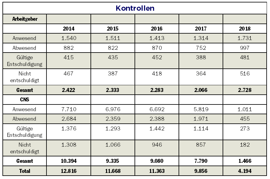 768.799 Arbeitsunfähigkeitsbescheingungen (Krankmeldungen) gingen 2018 bei der Gesundheitskasse ein; es sind dies auffallend mehr als 2017, als 664.967 solcher Scheine eingingen. Die 16 Agenturen der CNS haben 251.404 Schecks ausgestellt, was einer Zunahme von 6,6 Prozent im Verhältnis zu 2017 entspricht. Die rund 4.960.000 rückvergüteten Rechnungen an die Versicherten bedeuten eine Zunahme von 230.000 im Vergleich zu 2017.