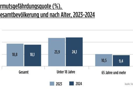 Ihre Situation hat sich letztes Jahr sogar noch weiter leicht verschlechtert: Waren im Vorjahr „erst“ 23,9 Prozent der Kinder dem Armutsrisiko ausgesetzt, so waren es 2024 bereits 24,1 Prozent. Das ist ein Kind von vier. Diese Kinder leben in Haushalten mit einem Lebensstandard von weniger als 2.540 Euro pro Monat und pro Person.