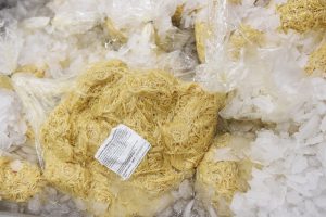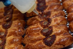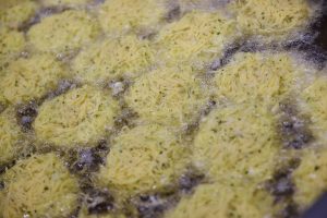 In einer anderen Ecke steigt der Geruch von „Gromperkichelcher“ auf. Eine Mitarbeiterin portioniert die Masse für den Luxemburger Klassiker und backt ihn in einer überdimensionalen Pfanne im Pflanzenöl aus. Bevor die Versuchung zu groß wird, sich ein fertiges „Gromperkichelchen“ zu greifen und herzhaft hineinzubeißen, geht es weiter zum Verpackungsraum.