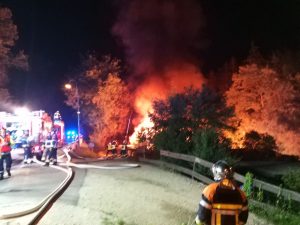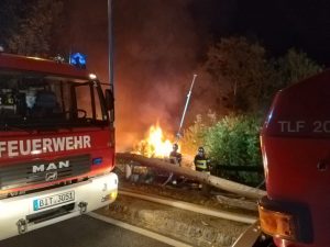 Eine Hütte war gegen 1.20 Uhr aus noch unbekannter Ursache in Brand geraten. Es wurde niemand verletzt.