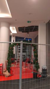 Neben der Wohnung wurde auch die Decke der Galerie neben dem Fußgängerüberweg im „Belval Plaza“ in Mitleidenschaft gezogen. Laut Augenzeugen sehe es nach einem Wasserschaden aus.