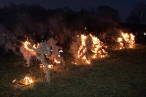 "..wird ausgeschlossen, dass es sich um einen rein christlichen Brauch handelt – anders, als die Kreuzform mancher Burgen es vielleicht vermuten lässt." Über Sinn oder Unsinn von Traditionen lässt sich streiten. Aber auch die Christen hatten ihre Tradition mit Feuer,vor allem wenn es eine "reinigende" Funktion haben soll. So wurde damals nicht der Winter verbrannt sondern Hexen und Renitente wie Giordano Bruno. Ob die Kleinen auf den Fotos wohl von diesen Traditionen wissen? Eher nicht,denn Gott und seine Vertreter sind gütig.Stattdessen wird ihnen heuer eingebläut,dass man mit CO2 das Klima kaputt macht.Ausser an Tagen wie diesen.