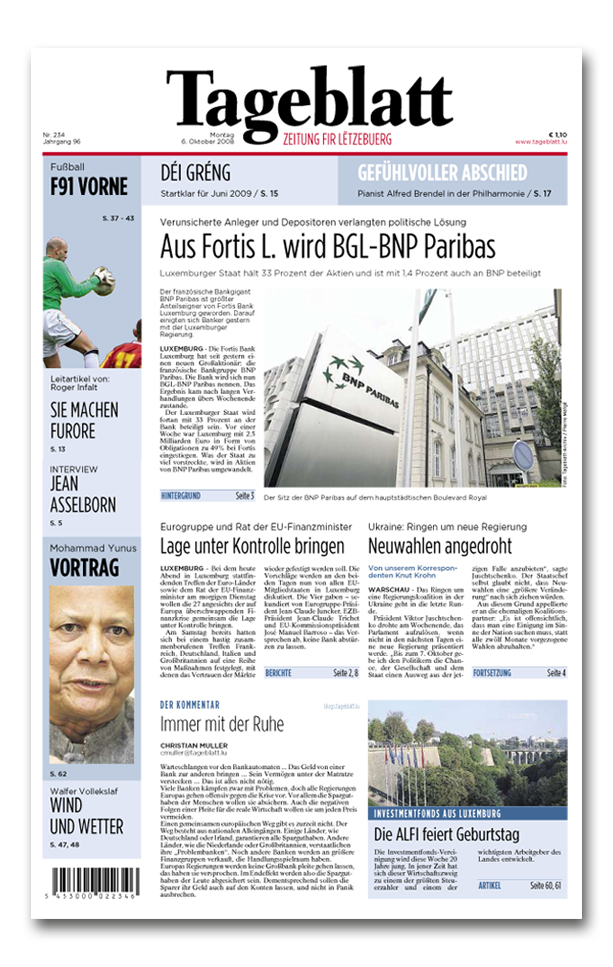Nach der Rettung der Fortis blickt das Tageblatt am Freitag, 28.September, auf die Rettung der Dexia zurück.