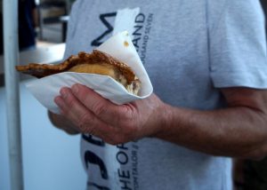 Zum Moselwein gehört ohne Frage auch „e gudde Mauffel“. Klassiker und zugleich Renner ist hier die klassische „Friture“. Mehr als 5 Zentner des köstlichen frittierten kleinen Fisches gehen am Wochenende über die Theke. Nicht fehlen dürfen Grillwurst, Metties, Koteletten und, aus der portugiesischen Küche, die Bifana, das beliebte Schweinefleisch-Sandwich.