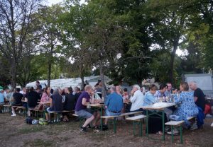 Nahezu alle Tische sind bereits besetzt, als wir am Samstagabend auf dem Festplatz eintreffen. Wir sind verabredet mit Gilbert Ruppert, Präsident der „Amicale Schengen Asbl.“, und mit Yves Kerg, Präsident der „Jugendinitiative Boermereng Asbl.“. Die beiden Vereine richten das Fest seit 2012 gemeinsam aus.