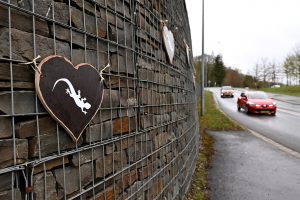 Rund 50 Teilnehmer seien es über den gesamten Nachmittag gewesen, schätzt Patrizia Arendt, Sekretärin der BIGS. Neben der traditionellen Ostereiersuche blieb genug Zeit, die nächste symbolische Aktion gegen den Bau der Bascharager Umgehungsstraße anzugehen. Dabei wurden am „Bobësch“ und am „Zämerbësch“ Plaketten in Herzform aufgehängt. Zunächst einmal entlang der Straße Plaketten mit aufgemalten Eidechsen. Arendt erklärt: „Eidechsen sind geschützte Tiere und müssen demnach bei Bauvorhaben umgesiedelt werden. Eigentlich hätte das längst geschehen müssen. Denn es ist nicht so einfach, einen neuen Lebensraum für sie zu schaffen.“ Auf eineinhalb bis zwei Jahre schätzen Experten die Zeit, ehe die Tiere eine neue Heimat akzeptieren würden. Und dort, wo sie umgesiedelt werden sollen, sei noch immer nichts geschehen, so Arendt.