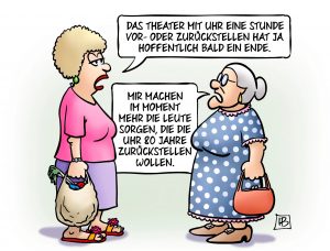 Dafür oder dagegen? Oder ist Ihnen die Zeitumstellung egal? Wie auch immer. Es wird wieder passieren. Sie werden es nicht verhindern können. Kommende Nacht. Manuell oder wie von Geisterhand, sprich Funksignal, werden wir von heute auf morgen eine Stunde in die Zukunft katapultiert. Wenn es zwei Uhr schlägt, heute Nacht, ist es im selben Augenblick bereits drei. Wie hat ein Spaßvogel auf Facebook geschrieben: „Dann werden wir am Sonntag nur 23 Stunden im Haus verbleiben müssen.“