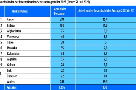 Die meisten Schutzsuchenden kamen im Juli dem Bericht zufolge aus Syrien (62), gefolgt von Eritrea (43). Das deckt sich auch mit den Anträgen des ganzen Jahres, von denen 37,9 Prozent von Syrern und 14,3 Prozent von Eritreern stammen. Danach folgen Afghanen, Venezolaner und Türken.