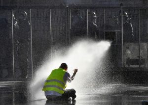 Erst am späten Nachmittag setzte die Polizei Tränengas ein, als einige Demonstranten zurück zum Stadtzentrum liefen und dabei Mülleimer in Brand steckten und das Schaufenster einer Bankfiliale zertrümmerten. Am Triumphbogen am oberen Ende der Champs-Elysées standen Dutzende Polizeifahrzeuge, darunter auch gepanzerte Fahrzeuge und Wasserwerfer. Polizisten durchsuchten die Taschen von Passanten und gingen vor den verbarrikadierten Schaufenstern der Geschäfte Streife. Im ganzen Land waren 65.000 Polizisten und 30.000 Feuerwehrleute im Einsatz. Landesweit wurden 233 Menschen festgenommen, wie Innenminister Christophe Castaner am Sonntag mitteilte. 172 von ihnen wurden in Gewahrsam genommen. 107 Menschen bekamen einen Strafzettel, weil sie sich über Demonstrationsverbote hinwegsetzten. Diesmal sei es gelungen, die „republikanische Ordnung“ aufrechtzuerhalten, erklärte Castaner. Alle genehmigten Demonstrationen seien weitgehend ruhig verlaufen. Gewalt und Plünderungen seien „verhindert, unterbunden und gestoppt“ worden.