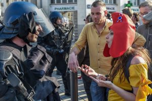 Nach Angaben ihrer Tochter hatte Geneviève Legay, die beim globalisierungskritischen Netzwerk Attac aktiv ist, an der Protestaktion teilgenommen, um gegen das Demonstrationsverbot zu demonstrieren. Sie hatte eine Regenbogenflagge dabei. Bei dem Polizeieinsatz stürzte sie und erlitt nach Angaben ihrer Tochter mehrere Schädelfrakturen und Hirnblutungen. Legays Familie will nach Angaben ihres Anwalts nun Anzeige erstatten, unter anderem wegen fahrlässiger Körperverletzung. Die Staatsanwaltschaft in Nizza leitete eine Untersuchung ein. Zusammenstöße mit der Polizei gab es auch in Montpellier, La Rochelle und Nantes. Es war der 19. Protestsamstag in Folge seit Beginn der „Gelbwesten“-Bewegung vor gut vier Monaten. Die „Gelbwesten“ fordern unter anderem mehr soziale Gerechtigkeit, höhere Renten, die Wiedereinführung der Vermögensteuer und den Rücktritt Macrons. Einige von ihnen wollen im Mai bei den Europawahlen kandidieren.