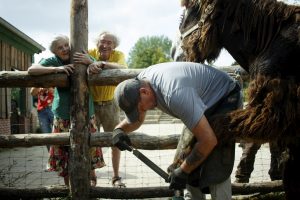 Dass Poitou-Esel mit ihrem zotteligen Fell die schwerste Eselrasse der Welt sind, können die neugierigen Besucher des Escher Tierparks, die den Hufschmied dabei beobachten, wie er die Hufe der Tiere reinigt, nicht erahnen. Routine in jedem Handgriff: „Hufschmied ist ein Beruf, den man entweder aus Leidenschaft macht oder gar nicht. Früher bin ich selbst geritten und genau diese Liebe zu den Tieren hat mich auf den Beruf gebracht. Ich mache ihn nun seit 30 Jahren und die Zeit vergeht immer noch jeden Tag wie im Flug.“