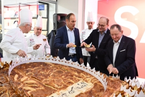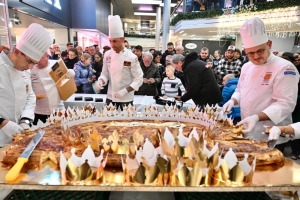 Der Dreikönigskuchen gehört einfach zum Jahresbeginn in Luxemburg dazu. Für das Fest am 6. Januar 2024 wurde in diesem Jahr ganz groß gedacht: Im Einkaufszentrum „La Belle Etoile“ in Strassen gab es am Mittwoch den größten Königskuchen Luxemburgs zu bestaunen – und auch zu verkosten. Denn die vielen Besucher sollten ja nicht hungrig nach Hause gehen. Eingeladen hatte der Verbund des „Liewensmëttelhandwierk“.