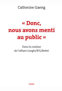 Trois ans après la publication d’un premier livre sur l’affaire Lunghi, Catherine Gaeng revient à la charge avec une deuxième enquête, „Donc, nous avons menti au public – Dans la coulisse de l’affaire Lunghi/RTL/Bettel“, qui s’appuie sur les pièces de l’information judiciaire pour faire éclater au grand jour des informations tues au public. Si la verve ironique colore parfois un peu trop subjectivement le récit, le montage habile tout comme l’énergie investie à faire connaître les dessous d’un véritable scandale médiatico-judiciaire en font un texte important.
