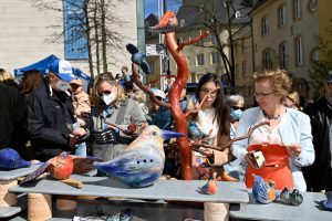 Wie jedes Jahr hatten sich die Aulebäcker auch 2022 wieder unterschiedliche Spezialausgaben einfallen lassen, welche die gesellschaftlichen Entwicklungen der letzten Wochen und Monate widerspiegeln. Nach den zwei „Pandemie-Modellen“ Corina und Vaccino präsentierte die Ligue HMC beispielsweise das „Péckvillchen“ Frida, das – wie der Name es vermuten lässt – für den Frieden in der Welt steht. Das „Péckvillchen“ Dubai20 ist indessen eine Hommage an die Weltausstellung in den Vereinigten Arabischen Emiraten, die dieses Jahr zu Ende ging. Der Prototyp ist denn auch vor Ort im Luxemburger Pavillon in Dubai entstanden. Mit Lehm aus Nospelt wohlgemerkt.