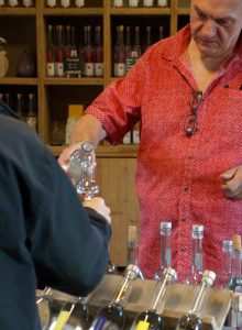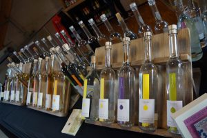 Unser weiterer Weg führt uns bergan nach Niederdonven. Die Herbstsonne taucht das Rebenlaub in ein beeindruckendes Farbenspiel und wir treffen auf Camille Duhr, Betreiber der „Distillerie Diedenacker“. Hier wird bereits nachweislich seit 1862 gebrannt, nunmehr schon in der sechsten Generation. In seiner Brennanlage blubbert gerade der Gin. „Vor etwa fünf Jahren dachten wir, Gin brennen ist nur eine Modeerscheinung“, erklärt uns Camille Duhr. „Das Phänomen hat sich jedoch immer mehr ausgeweitet, da Gin besonders bei der jüngeren Generation nach wie vor angesagt ist und unsere Kunden auch Interesse gezeigt haben. Ich habe meine Frau Mariette dann mit der Rezeptur beauftragt und sie hat eine Kreation mit zwölf verschiedenen Botanicals hervorgebracht.“ Neben den klassischen Bränden aus Äpfeln, Birnen, Mirabellen oder Zwetschgen führt Camille Duhr aber auch diverse Spezialitäten im Portfolio. Etwa seinen „Wäibrand 1862“, eine Cuvée aus Auxerrois und Pinot blanc, die vier Jahre im Eichenfass reift. Das Highlight ist jedoch sein Whisky. „Wir waren die ersten im Land, die einen Whisky gebrannt haben“, erklärt Camille nicht ohne stolzen Unterton. „Ich habe hier vier verschiedene Variationen, mit fünf, sechs, sieben und zehn Jahren Reifezeit im Eichenfass. Die Fässer kaufe ich bei Winzerkollegen, die diese nach Gebrauch an mich abgeben.“ Im Shop des Hauses herrscht reger Andrang. Camille Duhrs Angebot reicht von „Äppel“ über „Neelchesbiren“ und „Schléiwen“ bis zu „Wéngertspijen“.