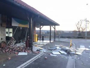 In Luxemburg ist die Masche zwar eher selten, aber auch nicht mehr unbekannt: Eine Tat, die auffällige Ähnlichkeiten zum heutigen Geschehen aufweist, ereignete sich erst vor einigen Monaten: Im März ist in Niederanven ein Automat per Gasmethode aus einer Wand gesprengt worden (Foto). Dabei wurde auch ein angrenzendes Postbüro komplett verwüstet.