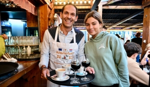 Dan Biancalana, Bürgermeister von Düdelingen, bringt Kaffee und Wein an die Gäste