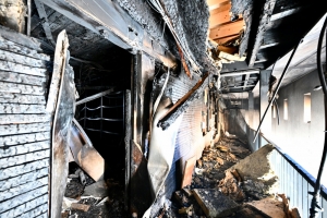 Das Rathaus in Junglinster ist noch immer weiträumig abgesperrt. Seit einer Woche sind die Ermittlungen der Polizei und der Staatsanwaltschaft allerdings abgeschlossen. Männer in weißen Schutzanzügen schleppen jetzt im Minutentakt verkohlte Möbelstücke und Bauschutt aus den Räumlichkeiten. In allen Räumen riecht es stark nach Rauch und verkohltem Holz. Verkohlte Kabel hängen von der Decke. Durch das Löschwasser hat sich der Boden an mehreren Stellen gewölbt. Telefone, Computer und Kopierer wurden achtlos auf den Boden geworfen. „Wir haben einen unabhängigen Experten angeheuert, der uns unterstützt. Auch die Versicherung hat einen Experten geschickt. Wir müssen jetzt abschätzen, wie viel wir abreißen müssen und was wir reparieren können. Zum jetzigen Zeitpunkt dürfen wir noch keine Bauarbeiten durchführen. Das gefällt mir jedoch nicht. Ich würde am liebsten so schnell wie nur möglich mit dem Wiederaufbau beginnen“, erklärt der Bürgermeister. Sorgen bereitet ihm vor allem das Löschwasser, das noch in den Mauern und im Boden ist. „Sollten die Reparaturarbeiten nicht schnellstmöglich beginnen, könnte sich hier zusätzlich noch Schimmel bilden. In dem dritten Gebäude, das zum Rathauskomplex gehört und nicht vom Feuer in Mitleidenschaft gezogen wurde, haben wir mittlerweile auch schon Probleme wegen des Löschwassers“, so der Bürgermeister.