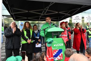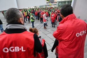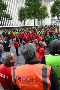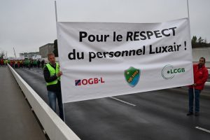 Untätigkeit der Generaldirektion, Überlastung des Personals – die Vorwürfe, die die Gewerkschaften OGBL, LCGB und NGL an das Luftfahrtunternehmen Luxair richten, wiegen schwer. Am Montag, also am Tag der zu dem Thema einberufenen Luftfahrt-Tripartite, haben sich zahlreiche Gewerkschaftler in Luxemburg-Stadt zu einer „Demonstration für den Respekt des Luxair-Personals“ versammelt. Unter den Protestlern war unter anderem Nora Back, Präsidentin des OGBL.