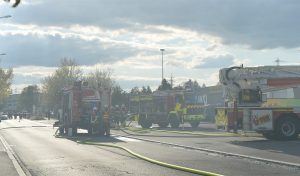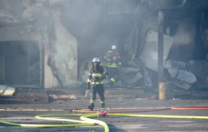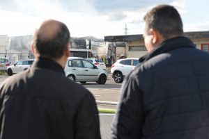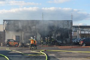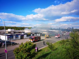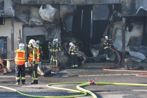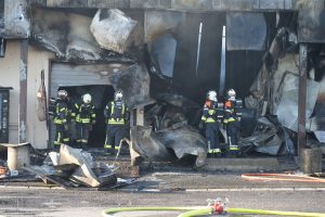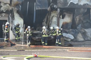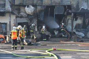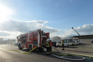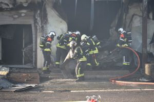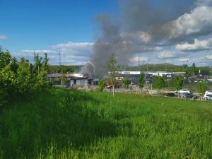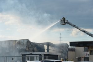 „Die Halle ist nicht mehr zu retten. Aber der Brand ist unter Kontrolle“, sagt Guy Bernar von der CGDIS („Corps grand-ducal d’incendie et de secours„). Der starke Wind war ein Problem bei der Brandbekämpfung. Denn dadurch gelangte der Rauch auch in die Wohnviertel.