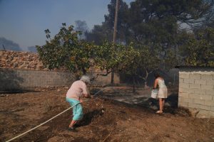 Das meteorologische Amt in Athen warnte vor stürmischen Winden rund um die Ägäis mit Geschwindigkeiten bis zu Stärke neun. Auch für die kommenden Tage wird erwartet, dass starke Winde die Löscharbeiten erschweren werden. Meteorologen warnten zudem in griechischen Medien, dass aufgrund anhaltender Trockenheit selbst kleine Funken innerhalb weniger Minuten einen Großbrand auslösen könnten.