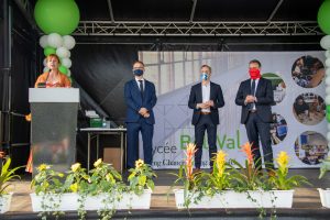 Das wollten sich weder Bildungsminister Claude Meisch noch Eschs Bürgermeister Georges Mischo (zudem früherer Sportlehrer des „Lycée Belval“) entgehen lassen: Die erfolgreichen Primaner der Schule wurden in einer ganz besonderen Feierstunde für den Abschluss ihrer schulischen Laufbahn geehrt: Ihre Diplome erhielten sie auf einer Open-Air-Bühne auf dem Parkplatz vor der Schule, gefeiert wurden sie mit lautem Hupen, Fernlicht und Blinker.
