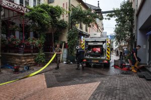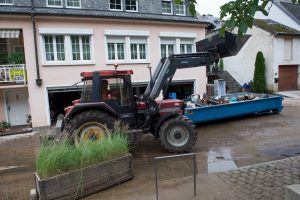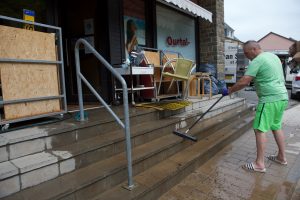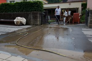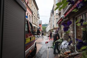 Echternach und Vianden hat der Starkregen besonders hart getroffen. Unaufhörlich stiegen die Pegel der Sauer und der Our, bis die Hochwasserschutzmaßnahmen völlig überfordert waren. Das Wasser schoss durch die Straßen, bahnte sich seinen Weg in Keller und Häuser. In Vianden sackte sogar ein Teil der rue du Vieux marché ein. Am Freitag hat sich nun Großherzog Henri ein Bild von der Lage gemacht. Begleitet hat ihn Innenministerin Taina Bofferding und CGDIS-Chef Paul Schroeder. Vor Ort gaben ihm die jeweiligen Bürgermeister eine Übersicht der Lage. Neben den offiziellen Stellen nahm sich der Landeschef aber auch Zeit für die betroffenen Bürger, die mitten in den Aufräumarbeiten steckten.