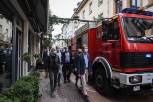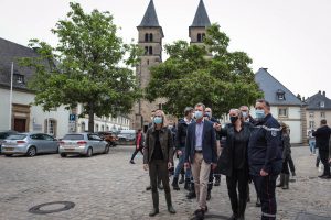Innenministerin Taina Bofferding und Großherzog Henri folgen den Erklärungen von Bürgermeister Claude Tonino und CGDIS-Chef Paul Schroeder Foto: Editpress/Fabrizio Pizzolante