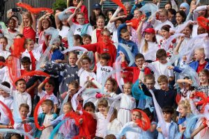Danach gaben 350 Schüler eine weitere musikalische Einlage. Der Großherzog und seine Frau trafen im Anschluss Vertreter der lokalen Vereine, die Stände auf dem Schulhof des Schulgeländes aufgebaut hatten. Zum Schluss des Besuchs tauschte sich Henri noch mit Bewohnern des Seniorenheims aus.