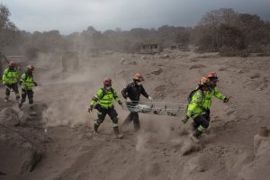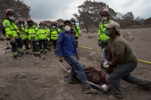 Die Einsatzkräfte legen die Leichen in Plastiksäcke, hängen sie an Baumstämme und tragen sie auf ihren Schultern aus dem Katastrophengebiet. Wenn die Helfer die Toten anheben, fallen die völlig verbrannten Körper häufig auseinander. „In den Strömen herrschen Temperaturen von bis zu 400 Grad“, erklärt der Direktor des guatemaltekischen Instituts für Vulkanologie (Insivumeh), Eddy Sánchez.